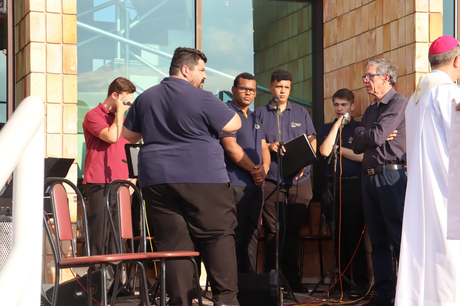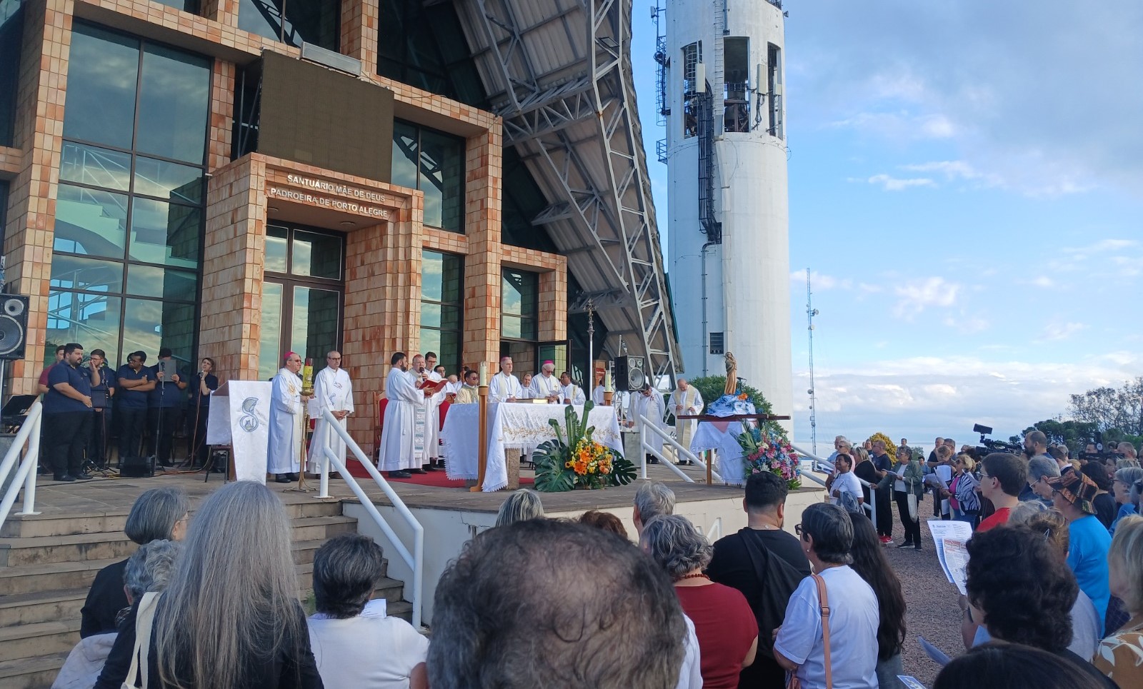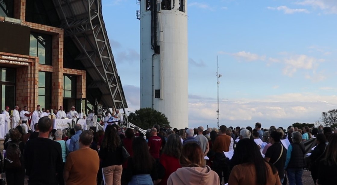 A celebração eucarística no alto do morro foi presidida por Dom Jaime Cardeal Spengler, arcebispo de Porto Alegre, que destacou “Na oração da Salve-Rainha, há uma expressão que às vezes passa despercebida: ‘Esperança nossa, salve’. E é com esse espírito que subimos a montanha.”