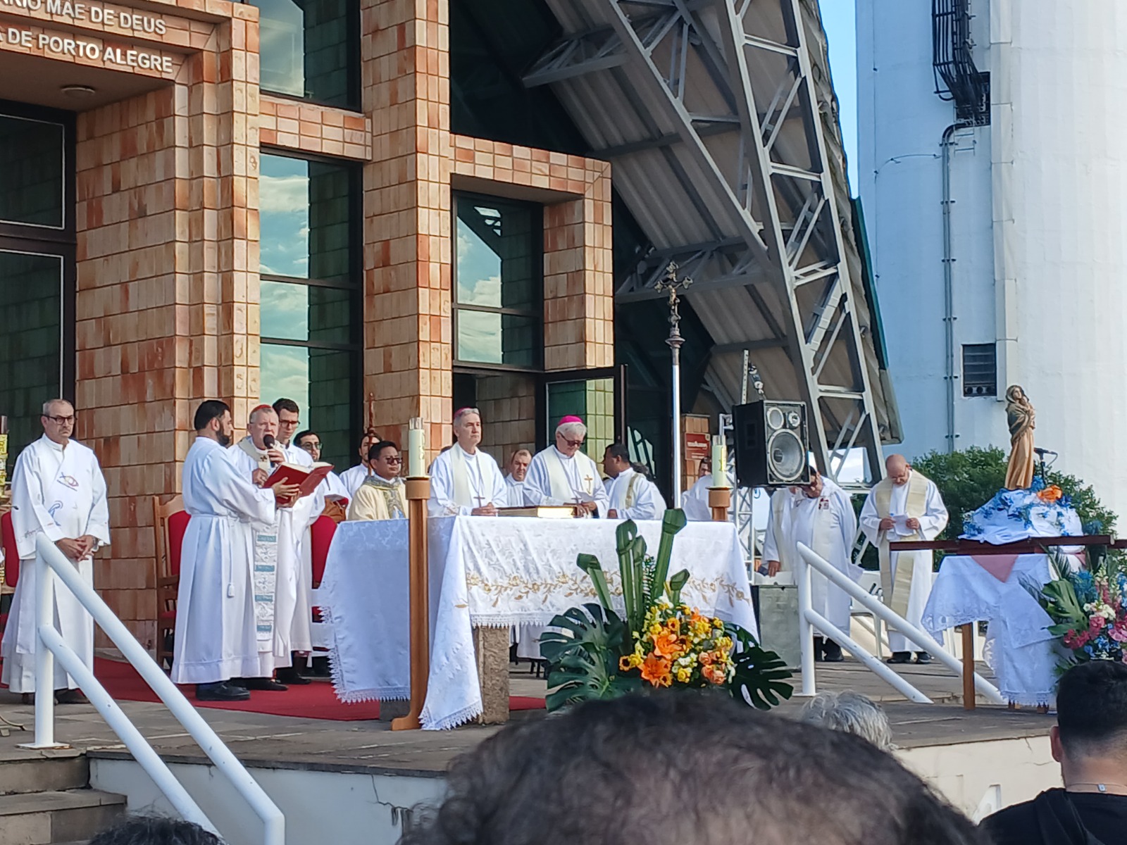 A missa foi concelebrada, também, pelos Bispos Auxiliares de Porto Alegre, Dom Juarez Destro, Dom Darley Kummer, Dom Bertilo Morsch e por padres da arquidiocese. Dom Bertilo destacou: “A Casa da Mãe sempre é um espaço muito especial, onde todos somos convidados a nos encontrar. Claro, a gente vem pedir, vem agradecer, mas que este dia se torne especial para a Arquidiocese, pois é o encontro das comunidades, o encontro dos devotos da Mãe de Deus. Afinal de contas, ela é a nossa padroeira, aquela que intercede por todos nós.”
