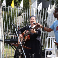 Após sua reflexão, Dom Juarez convidou para próximo do altar, o “Joãozinho”, neto do Venerável João Pozzobon, e perguntou-lhe: “O que você herdou de seu avô?”. Ele respondeu: “Aprendi com ele que a fé move montanhas”, recordando as muitas dificuldades que o avô enfrentou em silêncio, sempre confiando em Deus.