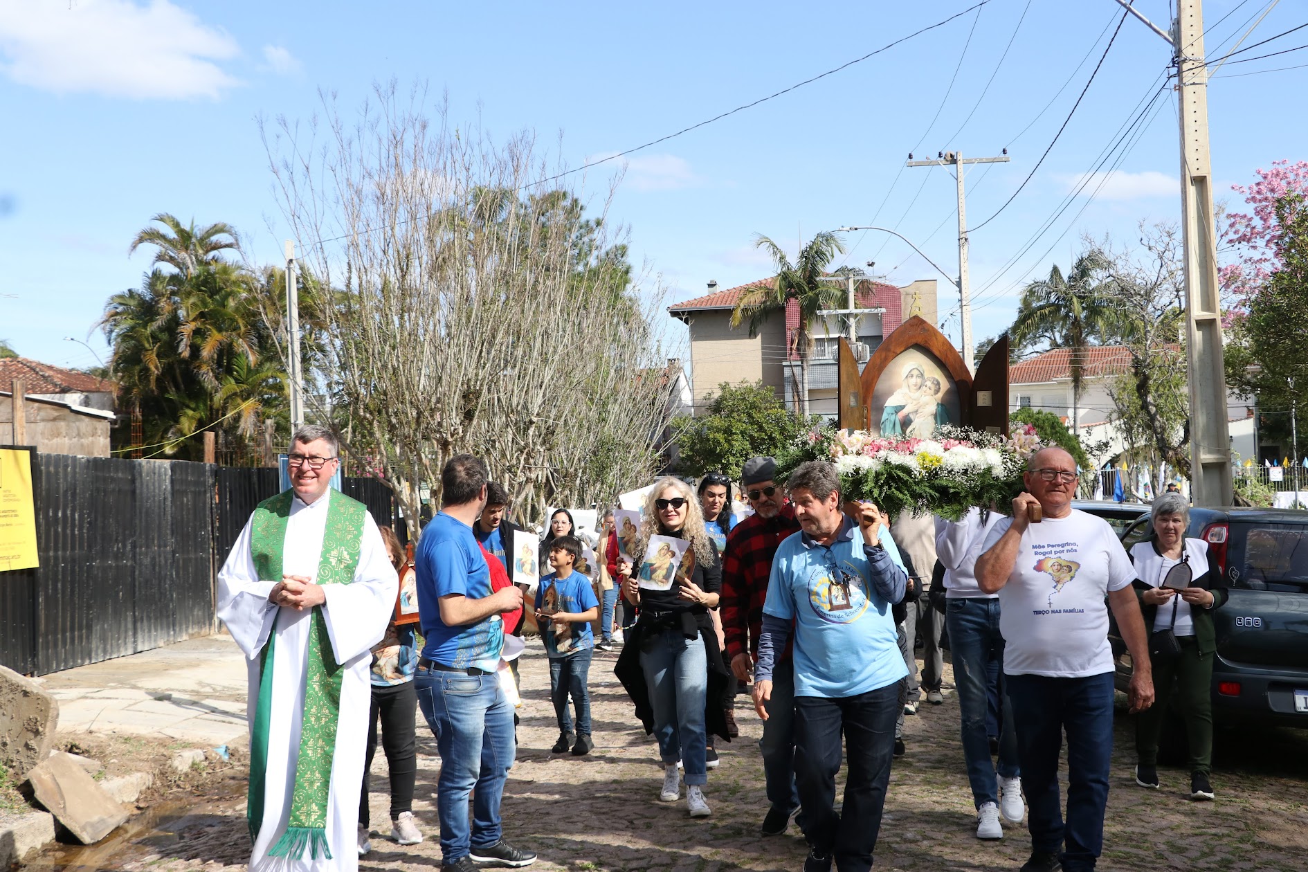 A programação começou com a acolhida festiva dos peregrinos e seguiu com momentos de oração, cantos e confraternização. Um dos pontos altos foi a procissão com a imagem da Mãe Peregrina pelas ruas do bairro Assunção, reunindo famílias e comunidades de diferentes regiões. Durante o percurso, rezou-se o terço, e algumas casas prepararam altares com imagens de Nossa Senhora, São José e Jesus. Em cada parada, havia uma oração especial e a bênção para moradores, vizinhos e famílias. No Santuário, os fiéis também participaram do Terço dos Homens Mãe Rainha.