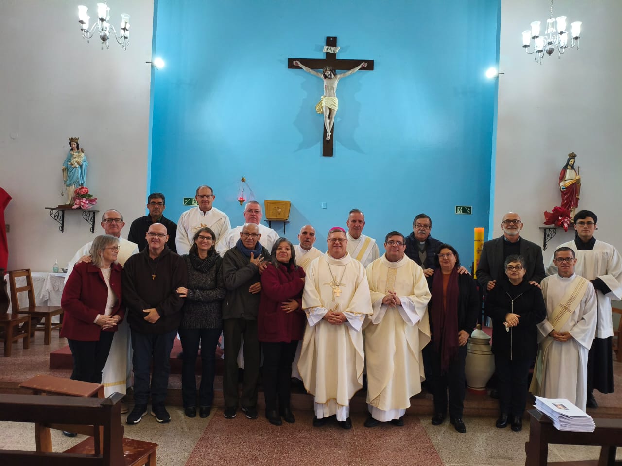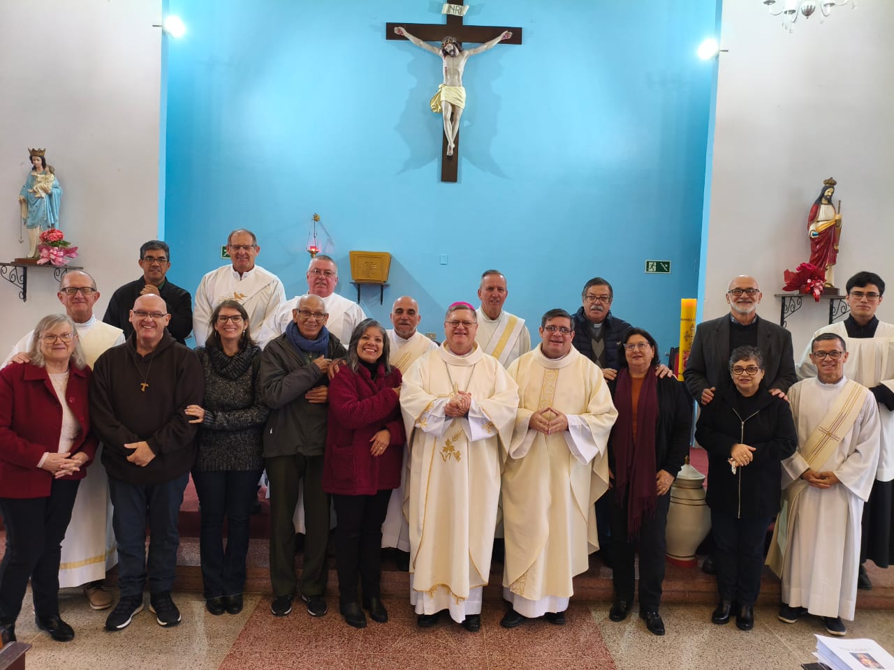 Na última sexta-feira, 7 de junho, na Paróquia Nossa Senhora dos Navegantes, na comunidade Cristo Rei, foi celebrado o Jubileu dos Diáconos Permanentes do Vicariato de Guaíba. O encontro contou com a presença do bispo auxiliar da Arquidiocese de Porto Alegre, Dom Odair Miguel Gonsalves dos Santos, e reuniu diáconos das quatro áreas que compõem o vicariato: São Jerônimo, Camaquã, Sertão Santana e Guaíba.
