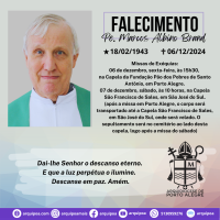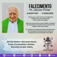 Com pesar comunicamos o falecimento do Mons. Aloysio Irineo Flach. O velório acontece hoje (14), a partir das 23h na Paróquia Nossa Senhora dos Anjos, em Gravataí. Amanhã (15) , às 7h, missa de corpo presente. As exéquias serão às 16h em São...